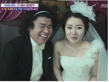예비신부 백아영씨는 “당시 오정태가 내가 좋아하던 코너에 나왔었다. 보자마자 너무 웃겨서 계속 웃었는데, 자기가 좋아서 웃는 줄 알더라”며 “사람은 착한 것 같았지만 외모는 쳐다보는 것도 미안할 정도로 이상하게 생겼었다”고 밝혀 주위를 폭소케 했다.