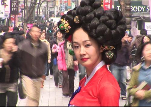 명세빈은 이 다큐멘터리에서 화려한 한복으로 치장하고 직접 조선 기생들의 이야기를 들려준다.