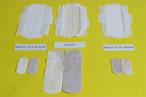 대상제품은 기존 ▲ 예지미인 순면감촉, ▲예지미인 플러스 순면감촉, ▲예지미인 플러스 실크감촉등 예지미인 3종과 시중에서 판매되는 각기 다른 3개 회사 4개 경쟁 제품 중형을 선정했다.
