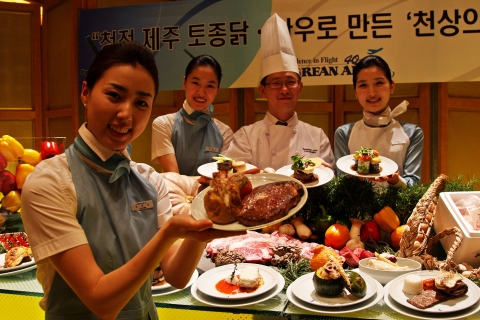 대한항공은 4월 1일부터 제주도 청정지역에서 생산한 토종닭과 한우로 만든 고품격 기내식을 인천~뉴욕, 인천~도쿄, 인천~시드니, 인천~파리, 인천~상하이 등 5개 노선 일등석 승객들을 대상으로 이 기내식을 제공하고 있다.