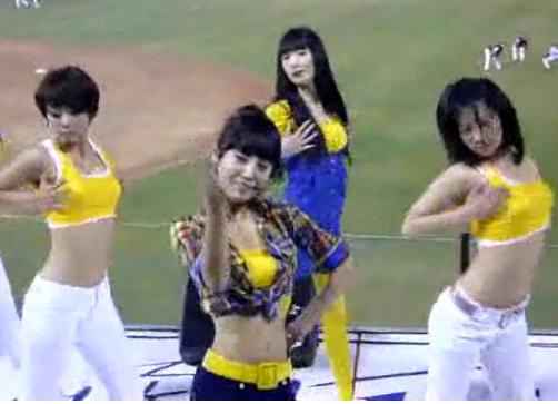 치어리더 출신의 여성듀오 트윈걸스(성희, 서경)가 야구장에서 신고식을 무사히 치렀다.