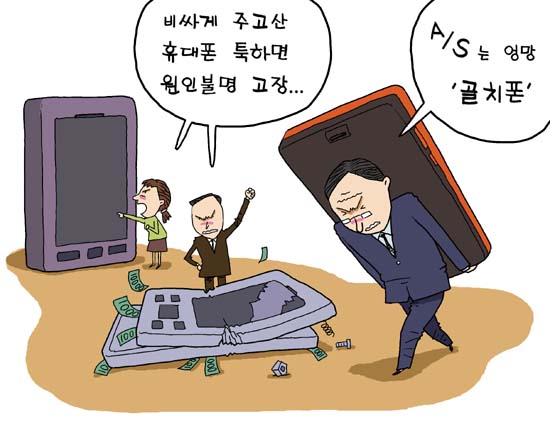 공짜 폰이 난무하는 가운데서도 굳이 비싼 돈을 주고 산 휴대폰이 반복적인 고장을 일으켜 소비자들이 정신적 시간적 경제적인 손해에 시달리고 있는 것.