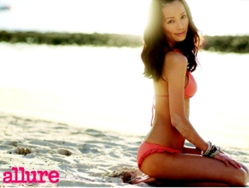 손태영 측은 14일 패션월간지 '얼루어'에 몸매가 상당 부분 드러나는 비키니 수용복 사진을 포함 화보 사진의 일부를 공개했다.