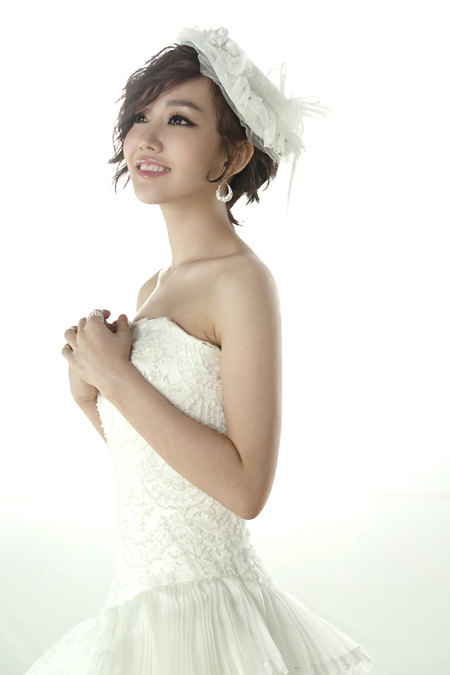 이는 15일 온·오프라인에서 발매되는 3집 앨범 'Part A-Peace Love & Ice Cream'의 타이틀 곡 '123' 뮤직비디오 장면을 위해 순백의 웨딩드레스를 입은 것.