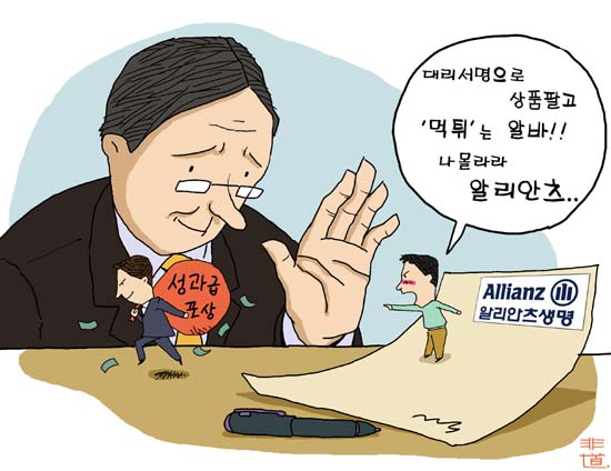 외국계보험사인 알리안츠 생명 아르바이트 직원이 고수익을 보장해준다며 허위 과장 광고로 계약을 유치해 엄청난 재산피해를 입었다며 소비자가 발을 굴렀다.