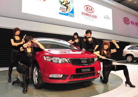 한편, 기아자동차는 이달 28일까지 상하이 신국제전락중심에서 개최되는 제13회 상하이 국제 자동차공업 전람회에 1184㎡(약 359평)의 전시공간을 마련하고 중국형 포르테와 쏘렌토R 등 신차를 비롯 친환경차 쏘울 하이브리드 및 프라이드(현지명:리오), 쎄라토, 오피러스, 스포티지, 모하비(현지명:보레고), 카렌스, 그랜드카니발 등 총 12대의 차량을 전시했다.