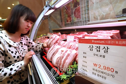 롯데마트 관계자는 "삼겹살은 LA갈비는 물론 값이 가장 싼 미국산 척아이롤의 2배에 육박하고 있다"고 밝혔다.