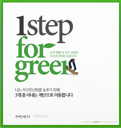 네이버는 참여자 1인 당 1000원씩 총 1억원의 환경 기금을 마련, ‘해피빈(http://happybean.naver.com)’ 을 통해 환경 단체에 전달할 계획이다.