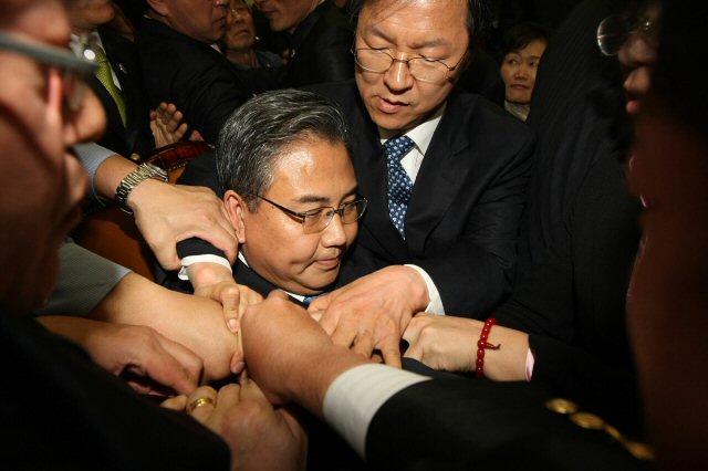 URL복사 기사공유하기 스크랩 프린트 메일보내기 글씨키우기 '누구 손이게~?'...박진 국회 외교통상통일위원회 위원장이 22일 오전 국회에서 열린 전체회의에서 한-미 자유무역협정(FTA) 비준 동의안을 통과시키려 하자 여야의원들이 마이크를 두고 몸싸움을 벌이고 있다. 여러 사람이 마치 박위원장의 목을 조르는 것처럼 보여 눈길을 끌고 있다.초연한 듯 고집스럽게 앉아 있는 박위원장의 모습도 이채롭다.(사진=연합뉴스) 저작권자 © 소비자가 만드는 신문 무단전재 및 재배포 금지 송숙현 기자 다른기사 보기 URL복사 기사공유하기 주요기사 LG전자, ISE 2026서 ‘LG 매그니트’ 공개…설치·운영 편의성 강화 정진완 우리은행장 “올해 경쟁은행과의 격차 줄이겠다” 하나금융, 올해 생산적 금융에 17.8조 공급한다 이재용 "숫자에 취하지 말라"…임원들에 '마지막 기회' 강조 흰색 패브릭 소파 변색됐는데...'자연스런 현상'이라며 무상AS 거부 김동연 지사 "북오산IC 진입로 3차선으로 늘려 체증 해소"