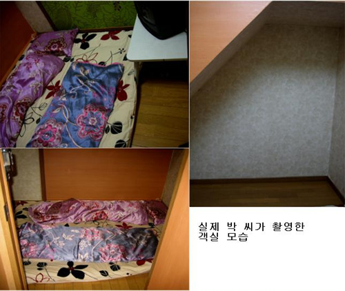 박 씨에 따르면 판매자가 광고한 객실 사진은 화사한 벽지와 쾌적한 환경, 그리고 인터넷 시설과 주방시설 등 편의시설이 두루 갖춰져 사람을 혹하게 했다. 또 ‘최대한의 공간 활용으로 2~3인 까지 편히 쉴 수 있는 공간’이란 문구도 함께 기재돼 있어 박 씨를 유혹했다.