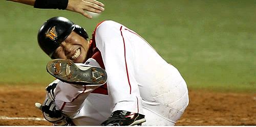1-8로 뒤진 8회초 무사 1, 2루 볼카운트 2-0에서 SK의 세번째 투수 채병룡의 공에 왼쪽 광대뼈 부분을 맞고 입은 부상이다.