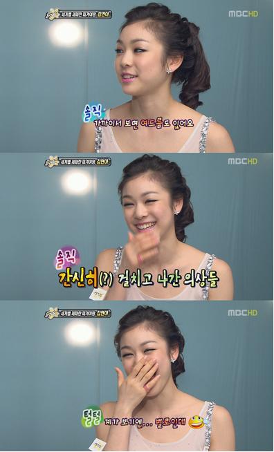 24일 방송된 MBC '섹션TV 연예통신'에서 김연아는 자신의 의상에 대해 "대충 입고 간 거다. 화제가 될 줄 전혀 몰랐다"며 수줍은 모습을 보였다.