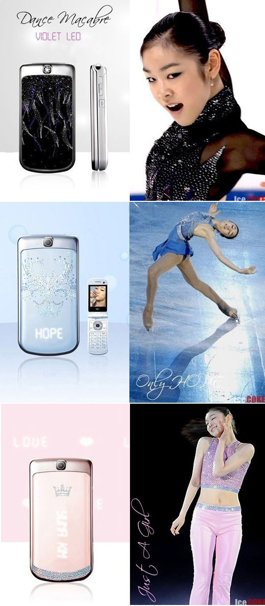 김연아 팬카페에 아이디 ‘icecoke’라는 네티즌이 제작한 것으로 모두 3종. 죽음의 무도(Danse Macabre)와 저스트 어 걸(Just a girl), 온리 호프(Only Hope) 등 김연아가 경기와 갈라쇼 등에서 입은 의상과 한 세트를 이루는 디자인을 기존 휴대전화에 감쪽같이 합성 시켰다.