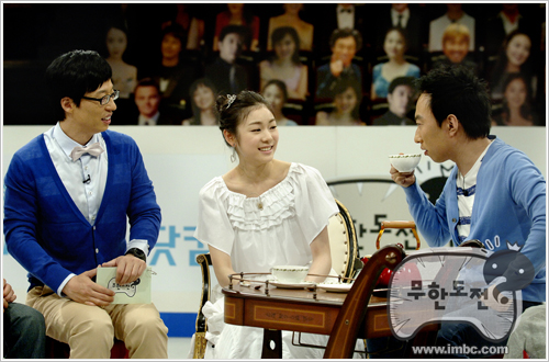 25일 방송된 MBC‘무한도전’에서 그녀는 김연아표 몰래카메라로 유재석 박명수 정형돈 정준하 전진 노홍철을 대기실에서 만나 깜짝 놀라게 했다.