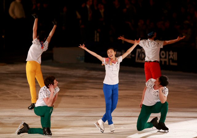공연이 끝난 뒤에 김연아와 출연자들은 환한 미소를 보내며 관중들에게 화답했다.