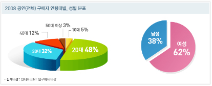 <그림 1 2008공연 구매자 연령대별 성별 분포>