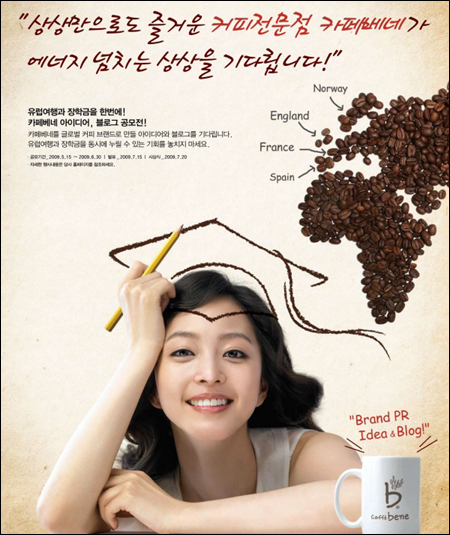 또한 포털 사이트의 카페, 블로그에 카페베네와 관련된 스킨 디자인이나 카페베네 타이틀 디자인 공모전도 열어 참신하면서도 독창적이고, 구성의 완성도, 미적 우수성 등을 만족시킨 이들에게도 500만원의 상금과 동남아여행티켓을 제공한다.