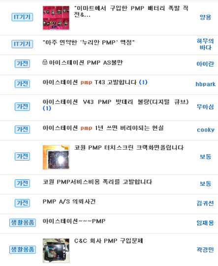PMP제품의 다양한 제품이상 및 엉성한 AS처리에 소비자들의 불만이 줄을 잇고 있다.