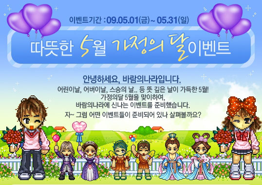 넥슨이 자체 개발 및 서비스 중인 클래식 롤플레잉 온라인 게임 바람의 나라의 게이머들을 대상으로 5월 가정의 날 기념 릴레이 이벤트를 시행한다.