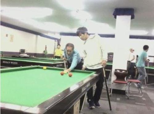 이 사진에는 일화가 있다. MC몽과 있던 중 우연히 마주친 아버지에게 끌려 당구장에 가게 된 것.