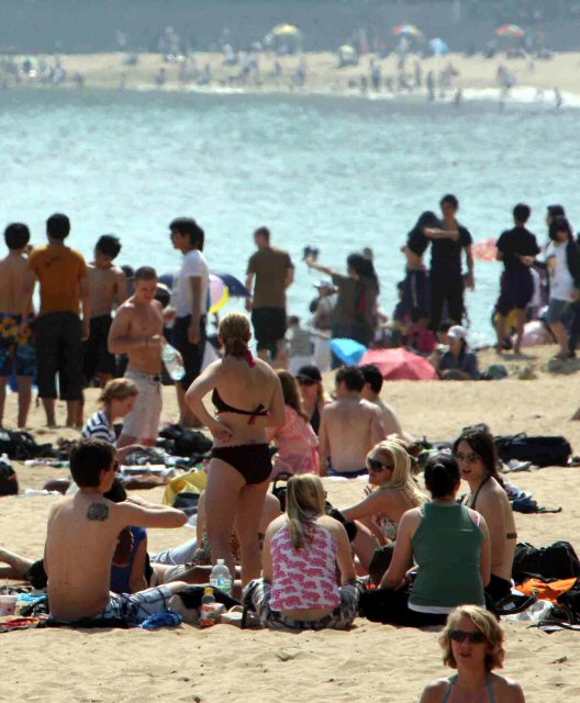 어린이날인 5일 부산 해운대해수욕장에서는 수영복차림의 외국인과 나들이객들이 몰려 더위를 식히고 있다.