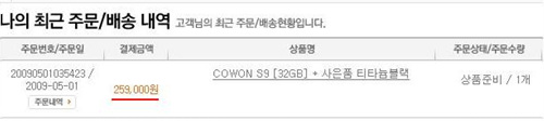 서울 가양동의 이 모(남. 23세)씨는 지난 1일 현대홈쇼핑(Hmall)에서 코원의 MP3(모델명:S9)를 25만9000원에 구입했다. 동일모델 최저가가 35만2700원 이었기에 즉시 구입을 결정했다.