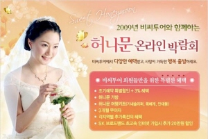 우리은행 '미인카드' 회원은 누구나 반값으로 허니문 이용이 가능하다. 또 '알뜰허니문종합전(http://e2682.co.kr)'을 통해 배우자의 여행 가격을 전액 혹은 50%까지 할인 받을 수 있다.