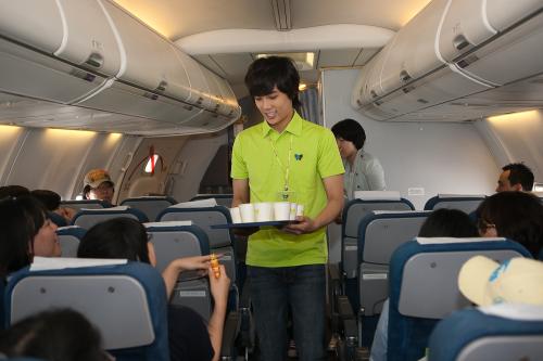 또 김형준과 허영생은 기내에서 안전시범을 보였고, 김현중은 모든 승객들에게 일일이 음료 서비스를 하며 임무를 수행했다.