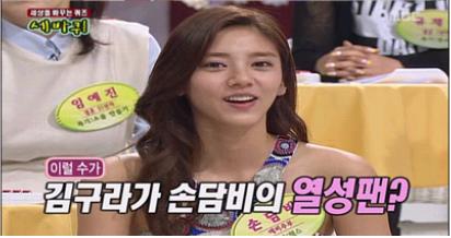 방송인 김구라가 가수 손담비를 무명시절부터 좋아했다고 고백했다.