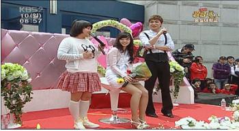 MC 지석진, 붐, 슈퍼주니어 이특은 “오늘 무슨 일이 있냐? 데뷔 후 방송 최초로 치마를 입은 것 같다” “신영씨가 입지 말아야 할 것을 입었다” “김신영씨가 숭실대 학생들에게 주는 선물입니다”고 너스레를 떨었다.