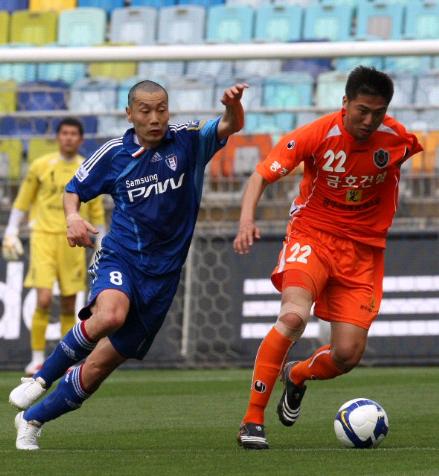URL복사 기사공유하기 스크랩 프린트 메일보내기 글씨키우기 삭발을 한 수원 삼성 송종국(왼쪽)이 10일 수원월드컵경기장에서 열린 프로축구 2009 K리그 광주 상무와의 경기에서 송한복과 볼 다툼을 벌이고 있다. 이날 수원 주장 송종국은 팀 성적 부진에 배코를 치고 경기장에 나왔다.(사진=연합뉴스) 저작권자 © 소비자가 만드는 신문 무단전재 및 재배포 금지 스포츠연예팀 다른기사 보기 URL복사 기사공유하기 주요기사 ‘소비자 보호’ 사라진 금감원 금융소비자보호처...앙꼬 없는 찐빵? 시중은행, 지점 158곳 줄이고 출장소 74곳 늘려... 내점 고객 줄면서 몸집 축소 10대 건설사 엇갈린 분양 전략…삼성·대우 ‘선별공급’, DL이앤씨 ‘물량확대’ 위기의 백화점 생존전략...롯데-핵심 점포, 신세계-명품·미식으로 승부 '밥솥 명가' 엇갈리는 마케팅 전략…쿠쿠-탈밥솥·제품 다각화, 쿠첸-밥솥 강화 집중 [따뜻한 경영] 현대모비스 ‘주니어 공학교실’로 과학 인재 육성