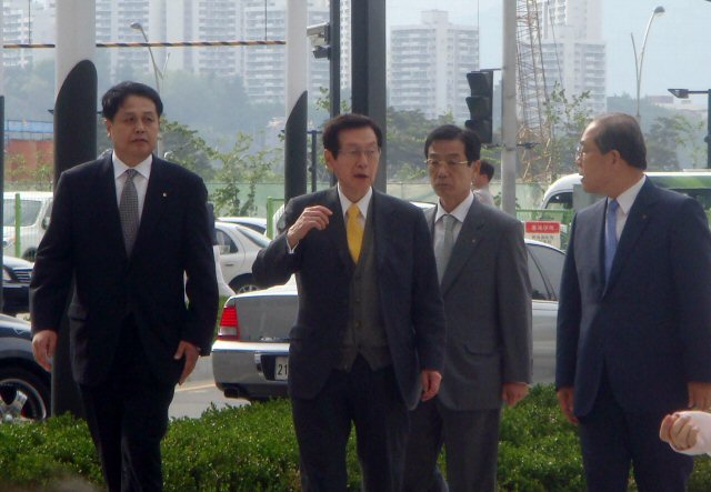 신격호(88) 롯데그룹 회장이 노구를 이끌고 지난 2일 경쟁사인 부산 해운대 신세계 센텀시티를 둘러보고 있다.