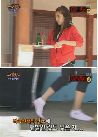 섹시 퀸 손담비가 선배 이효리의 불호령에 맨발에도 불구하고 일사불란하게 움직였다.