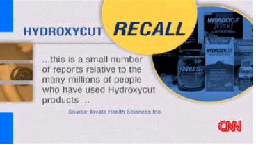 이달 초 미국 FDA(식품의약국)은 하이드록시컷이 드물지만 심각한 간 손상이 발생해 사망에 이르기까지 한다는 점을 들어 14종에 대해 리콜조치한 바 있다.
