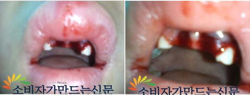 막 돌이 지난 아이가 바닥에 내동댕이쳐져 쇼핑카에 깔린 것. 게다가 나무젓가락에 찔린 아이의 입에서는 피가 줄줄 흐르고 있었다.