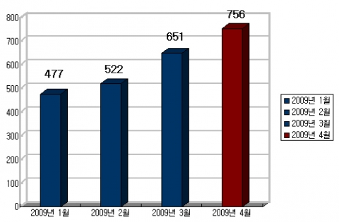 또 4월 전체 채용공고 등록 수는 6207건으로 3월 6459건에 비해 다소 주춤했으나 건축분야 채용은 3월에 비해 16%의 증가율을 기록했다.