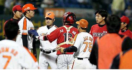 URL복사 기사공유하기 스크랩 프린트 메일보내기 글씨키우기 14일 대전구장에서 펼쳐진 2009 프로야구 KIA(기아) 타이거즈와 한화 이글스 경기에서 기아 투수 진민호가 던진 공에 맞은 한화 김태완이 마운드로 뛰어가자 심판과 선수들이 달려나와 이를 제지하고 있다. (사진=연합뉴스) 저작권자 © 소비자가 만드는 신문 무단전재 및 재배포 금지 스포츠연예 다른기사 보기 URL복사 기사공유하기 주요기사 화이트 생크림 파이에서 프리미엄 디저트까지…몽쉘의 30년 변신사 GC녹십자, 지난해 매출 1조9913억 원…사상 최대 크래프톤, 주한인도대사와 기술 협력·투자 확대 논의 스텔란티스코리아, ‘2025 스텔란티스 어워드’ 개최 락앤락, 라이프스타일 브랜드 '택플로우' 론칭 애경산업, 지난해 영업이익 211억 전년比 54.8%↓…중국 시장 부진 탓
