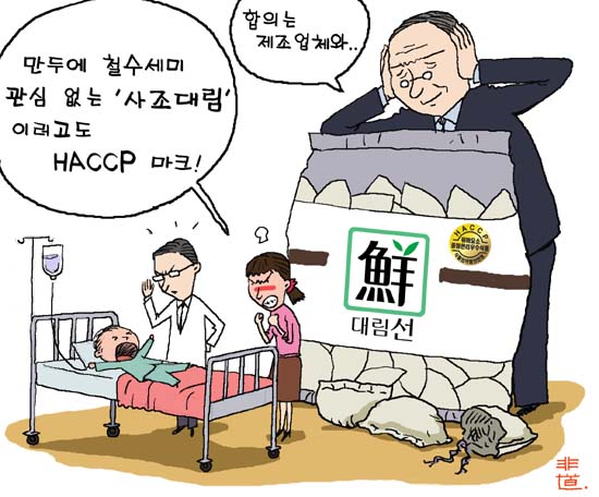 "안전성을 보장한다는'위해요소 중점관리 (HACCP)'식품에서 설겆이중에 사용하는 철수세미가 나왔습니다. 1년에 한두번은 이같은 일이 일어난다는 데 식품의약안전청은 이런 회사의 제품도 HACCP으로 품질보증합니까?"
