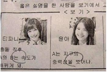 중고등학교 시험문제에 아이돌 스타들등이 등장해 팬들의 뜨거운 성화를 얻고 있다.