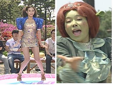 한편, 지난주 이휘재와의 가위바위보 벌칙 결정전에서 벌칙수행을 당하게 된 현영은 애니메이션 영화 '슈렉'의 여주인공 '피오나 공주'로 분장. 현오나로 변신해 시청자들을 놀라게 했다.