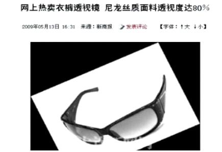 한편, 중국의 법률 전문가들은 투시 안경을 판매·구입하는 행위는 모두 심각한 위법 행위라고 경고했다.