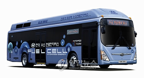서울시는 18일 `제3차 C40 세계도시 기후정상회의' 기간에 기후정상회의와 기후박람회가 진행되고 있는 신라호텔과 코엑스 사이를 오가는 셔틀버스로 25인승 수소연료전지 버스 2대를 투입했다.