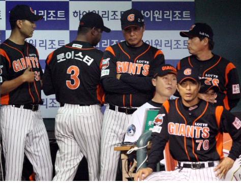 롯데 자이언츠 로이스터 감독(57)이 19일 잠실구장에서 열린 2009 CJ 마구마구 프로야구 두산과 롯데의 경기 6회말 무사 2,3루 상황에서 퇴장당하고 있다.