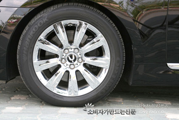 에쿠스에 적용된 245-50-R18 타이어는 전반적으로 나무랄 것은 규격은 아니지만, 차량 성능에 비해 급박한 상황에서 잡아주는 접지력이 충분하지 않아 종종 컨트롤이 흐트러지는 경우가 있다. 고속 급선회나 고속 주행 중 급제동시 보조적으로 잘 제어해 주다가도 마무리에서 종종 제어가 완전하지 않다고 느껴지는 부분이 있다. 타이어의 퀄리티가 좀 더 보완된다면 금상첨화가 되지 않을까 하는 바램을 가져본다.