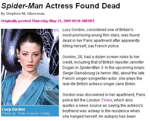 영국 여배우 루시 고든(29)이 자택에서 숨진 채 발견됐다.