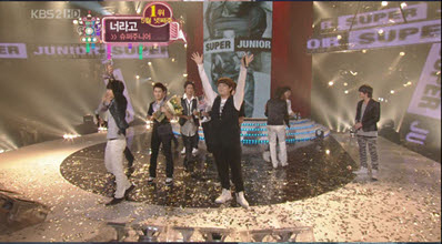 슈퍼주니어는 22일 KBS 2TV ‘뮤직뱅크’에서 신곡 ‘너라고’ 활동 첫 주 만에 정상을 차지했다.