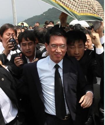 김형오 국회의장은 25일 오전 경남 김해시 진영읍 봉하마을에 설치된 노무현 전 대통령의 빈소를 직접 조문하는 데 성공(?)했다.