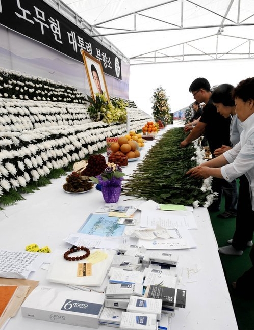대검 중수부로부터 뇌물 혐의로 수사를 받아온 노 전 대통령은 서거 전 남긴 유서에서 "너무 힘들었다. 많은 사람을 힘들게 했다"며 "책을 읽을 수도 없다. 삶과 죽음이 하나 아닌가. 마을 주변에 작은 비석하나 세워달라"고 밝혔으며 아울러 "화장을 해달라"고 마지막 유서를 남겼다.(사진=연합뉴스)