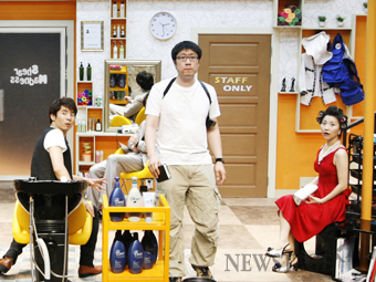 아직 시작시간이 아닌데 무대 위에선 미용사 언니가 분주하게 움직인다. 좀 더 있으려니 남자 미용사가 나와 일할 준비를 하고 들어온 손님을 맞는다. 핑크색 티셔츠에 달라붙는 바지, 뾰족 구두를 착용한 이 미용사는 게이스러움을 전면에 내세우며 다소 과장스럽게 행동했다. 음, 내 미용사가 이런 장면을 보면 좀 불편해하겠는데? 그들의 행동을 보고 있는 동안 어느새 개연시간은 지나있었다.