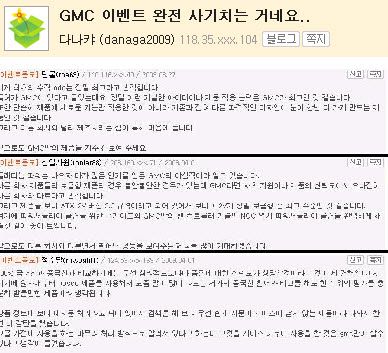하지만 정 씨와 네티즌들은 "어떻게 직원 한 명이 회사의 협조없이 수 년간 이런일을 벌였다고 믿을 수있냐? 경품구매 내역을 공개하라"고 항의했지만 GMC 측은 '더 나은 GMC'가 되겠다'는 식으로 동문서답만 되풀이 했다.